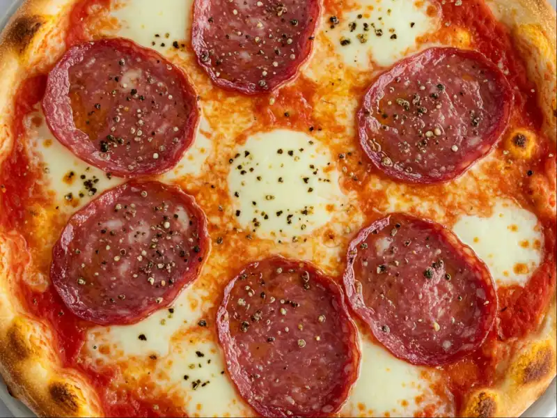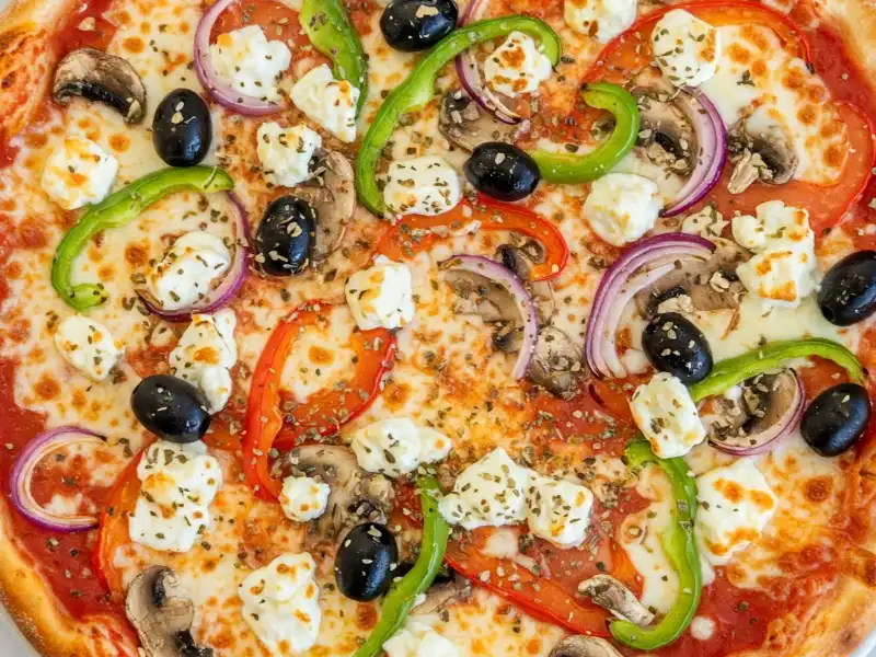 • Tomato sauce, mussels, crab sticks, baby shrimps, colored peppers, mozzarella cheese
